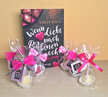 Taschenbuch „Wenn Liebe nach Pralinen schmeckt“ mit einem Päckchen Pralinen von Emily Bold signiert Taschenbuch Gespendet von: Emily Bold |