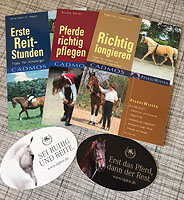 Buchpaket für Pferdefreunde, bestehend aus: 1 Taschenbuch „Erste Reitstunden: Tipps für Einsteiger“ von Anne K. Hagen 1 Taschenbuch „Pferde richtig pflegen“ von Nicole Künzel und 1 Taschenbuch „Richtig longieren“ von Angelika Schmelzer 3 Taschenbücher Gespendet von: CADMOS VERLAG |